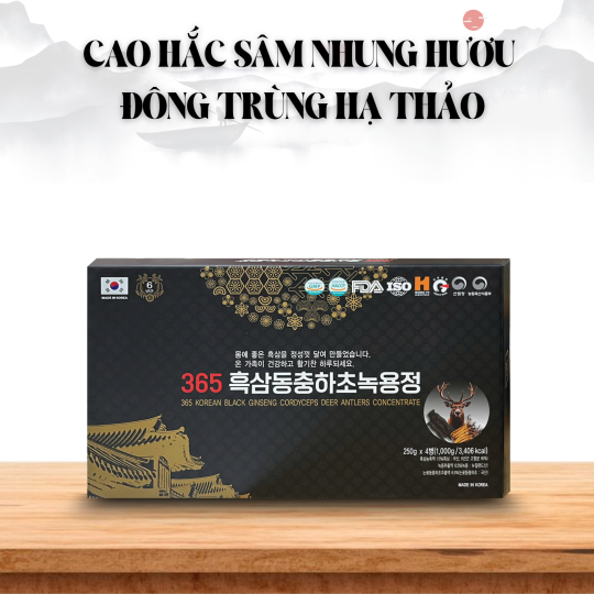 Cao Hắc Sâm Nhung Hươu Đông Trùng Hạ Thảo 365 là sự kết tinh hoàn hảo của thiên nhiên Hàn Quốc, mang đến giải pháp bảo vệ sức khỏe bền vững. Đừng bỏ lỡ cơ hội sở hữu "vương dược" này để tận hưởng một cuộc sống dẻo dai và tràn đầy năng lượng.