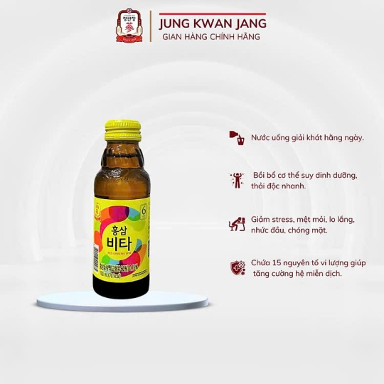 Trong cuộc sống hiện đại, áp lực công việc, thiếu ngủ và chế độ ăn uống thiếu cân bằng dễ khiến cơ thể rơi vào trạng thái mệt mỏi, giảm sút sức đề kháng. Lúc này, việc bổ sung thực phẩm chức năng chất lượng, an toàn và hiệu quả là điều cần thiết. Một trong những sản phẩm được người tiêu dùng tin tưởng hàng đầu hiện nay chính là Nước Hồng Sâm Vita KGC 100mL – đến từ thương hiệu nhân sâm số 1 Hàn Quốc Jung Kwan Jang (KGC).