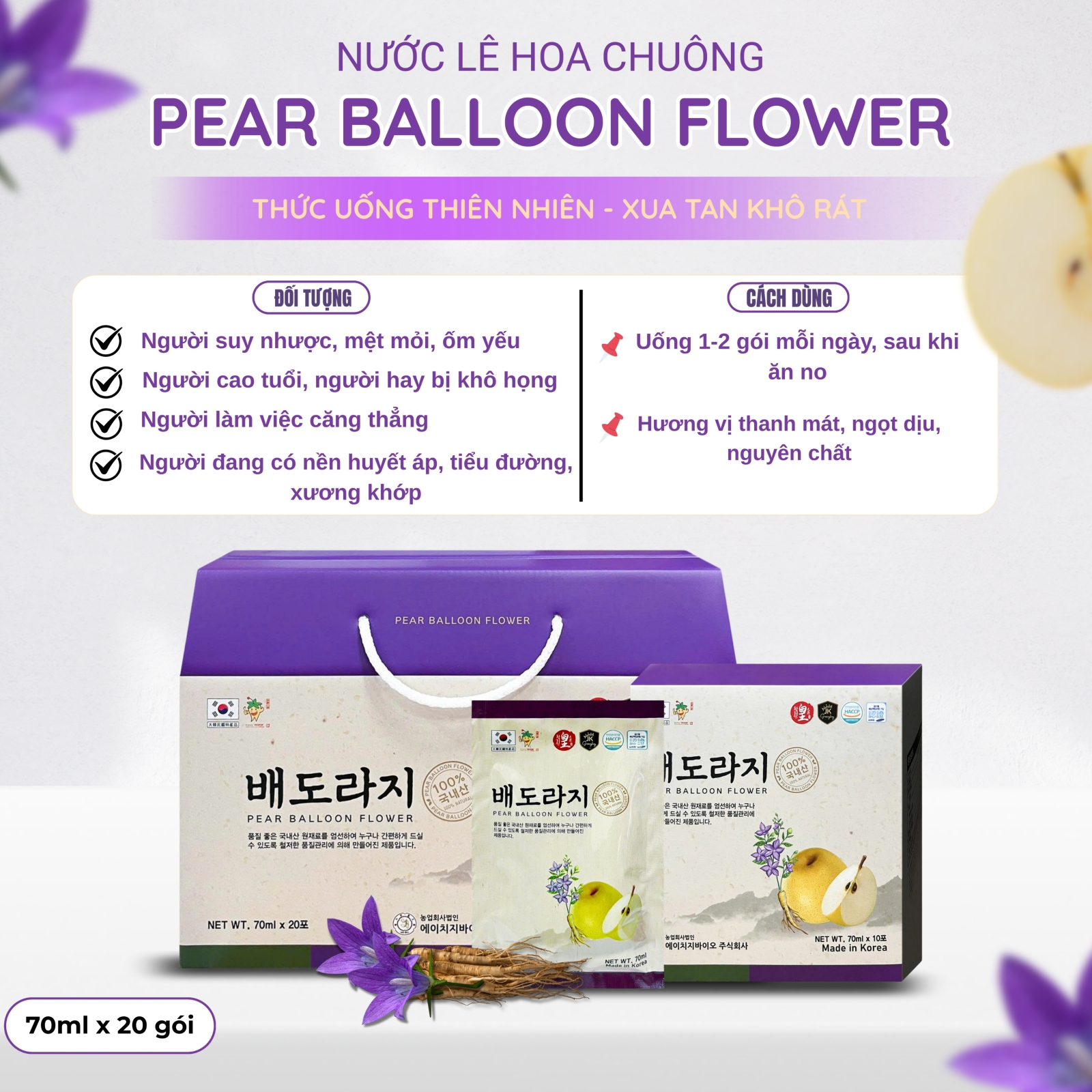 Nước Lê Hoa Chuông Hàn Quốc (20 Gói): Giải Pháp Vàng Cho Hệ Hô Hấp