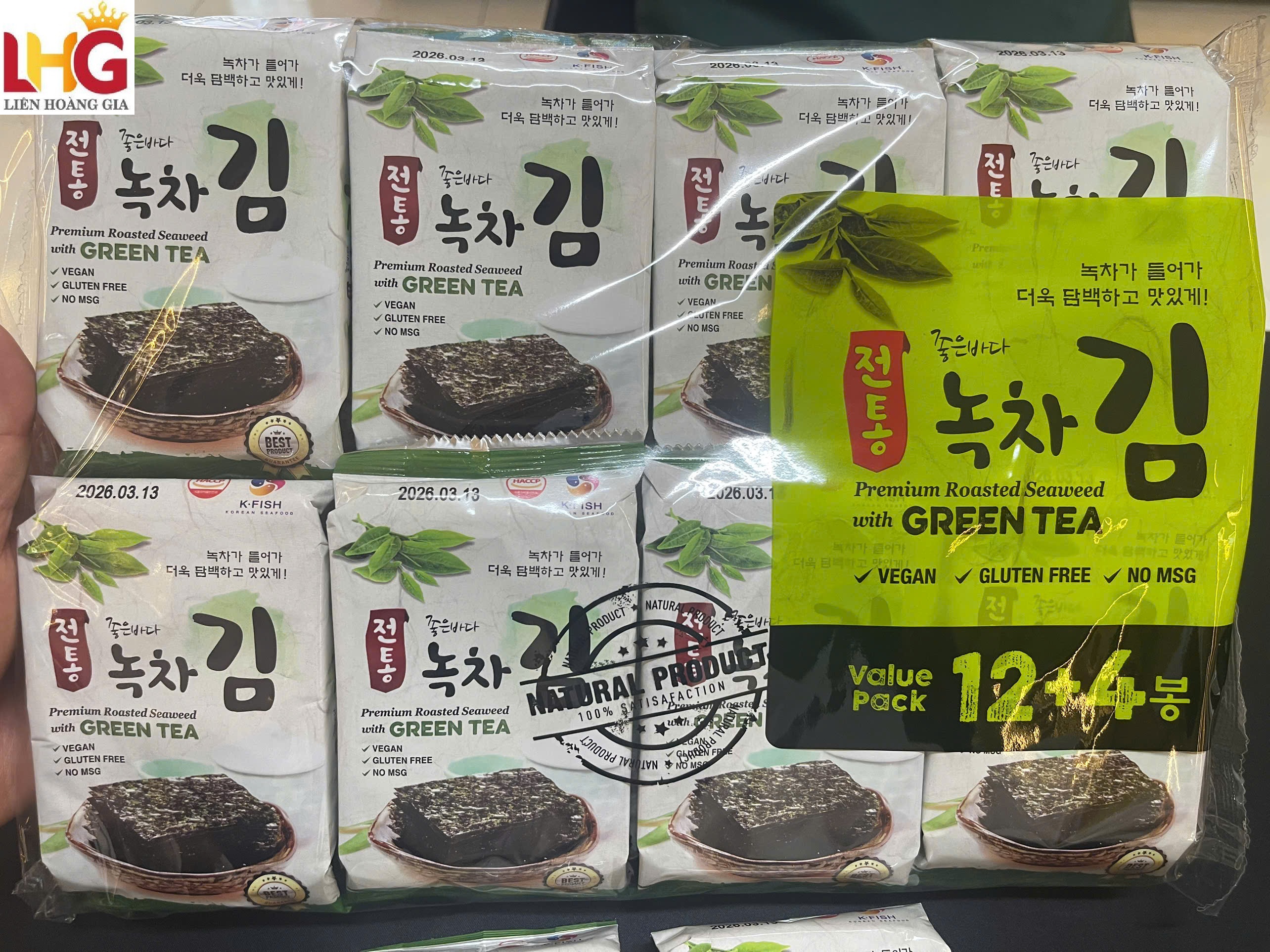 Rong biển ăn liền KFish vị trà xanh nhập khẩu Hàn Quốc lốc 16 gói