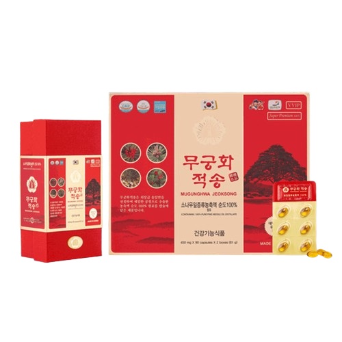 Tinh Dầu Thông Đỏ Mugunghwa Jeoksong Chính Phủ 180 viên chuẩn Hàn Quốc, chiết xuất 100% lá thông đỏ, hỗ trợ giảm mỡ máu và tăng cường đề kháng. Cam kết chính hãng Samsung.