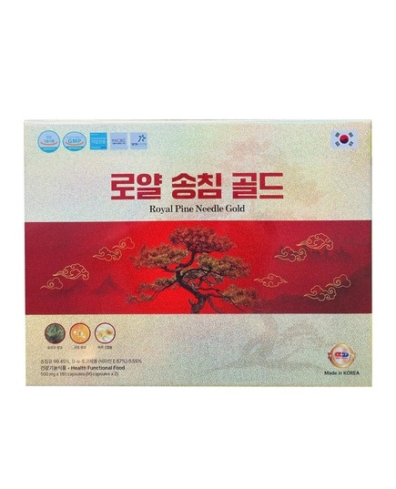 Royal Pine Needle Gold là tinh dầu thông đỏ cao cấp từ Hàn Quốc, hàm lượng tinh khiết 99.45% (dầu lá thông), được phát triển bởi Bio Pharma CO.Ltd và bảo trợ bởi SamSung. Hộp 180 viên x 500mg, hỗ trợ bảo vệ sức khỏe tim mạch và tăng cường đề kháng vượt trội.