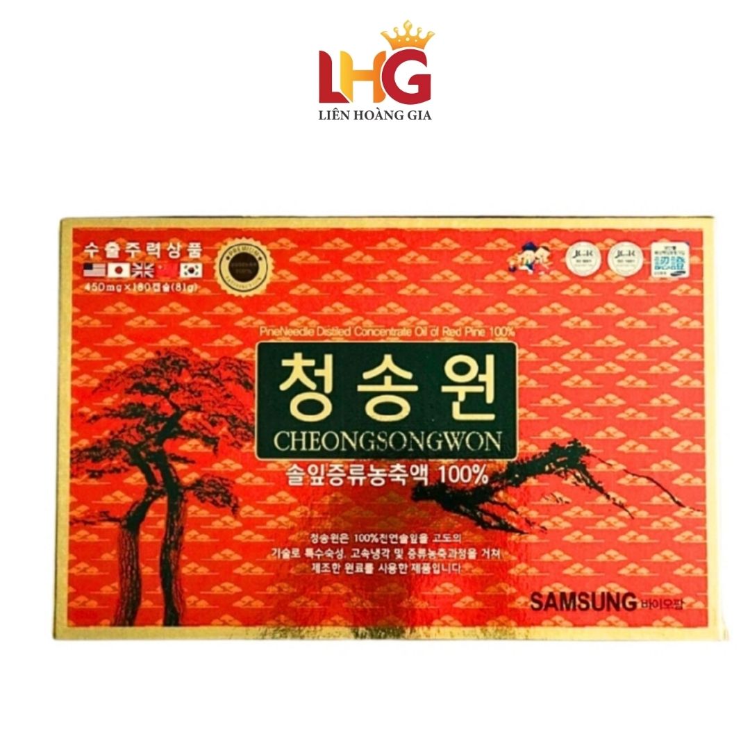 Tinh dầu thông đỏ Samsung Cheongsongwon 180 Viên là dòng sản phẩm chăm sóc sức khỏe cấp độ cao nhất, hội tụ tinh túy chiết xuất 100% nguyên chất từ lá thông đỏ quý hiếm của xứ sở Kim Chi. Được bảo chứng chất lượng bởi tập đoàn Samsung và nhà sản xuất Cheongsongwon, sản phẩm tự hào đạt các tiêu chuẩn quốc tế ISO 9001 và ISO 14001, chinh phục những thị trường khó tính nhất như Mỹ, Nhật và Anh Quốc. Với khả năng thanh lọc máu mạnh mẽ, hòa tan mỡ máu (Cholesterol) và hỗ trợ ổn định đường huyết, đây chính là giải pháp bồi bổ chuyên sâu giúp bạn chủ động bảo vệ hệ tim mạch, ngăn ngừa tai biến và duy trì sức trẻ bền bỉ cho cơ thể.