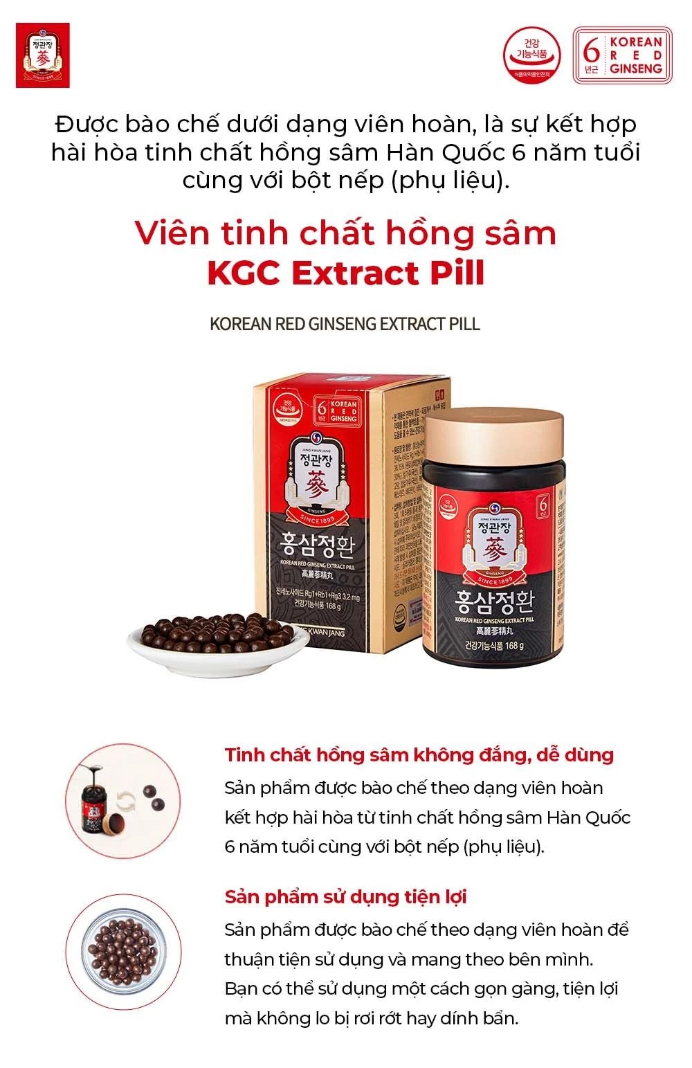 Viên Hồng Sâm KGC Extract Pill 168g | Món Quà Sức Khỏe Vàng Từ Jung Kwan Jang