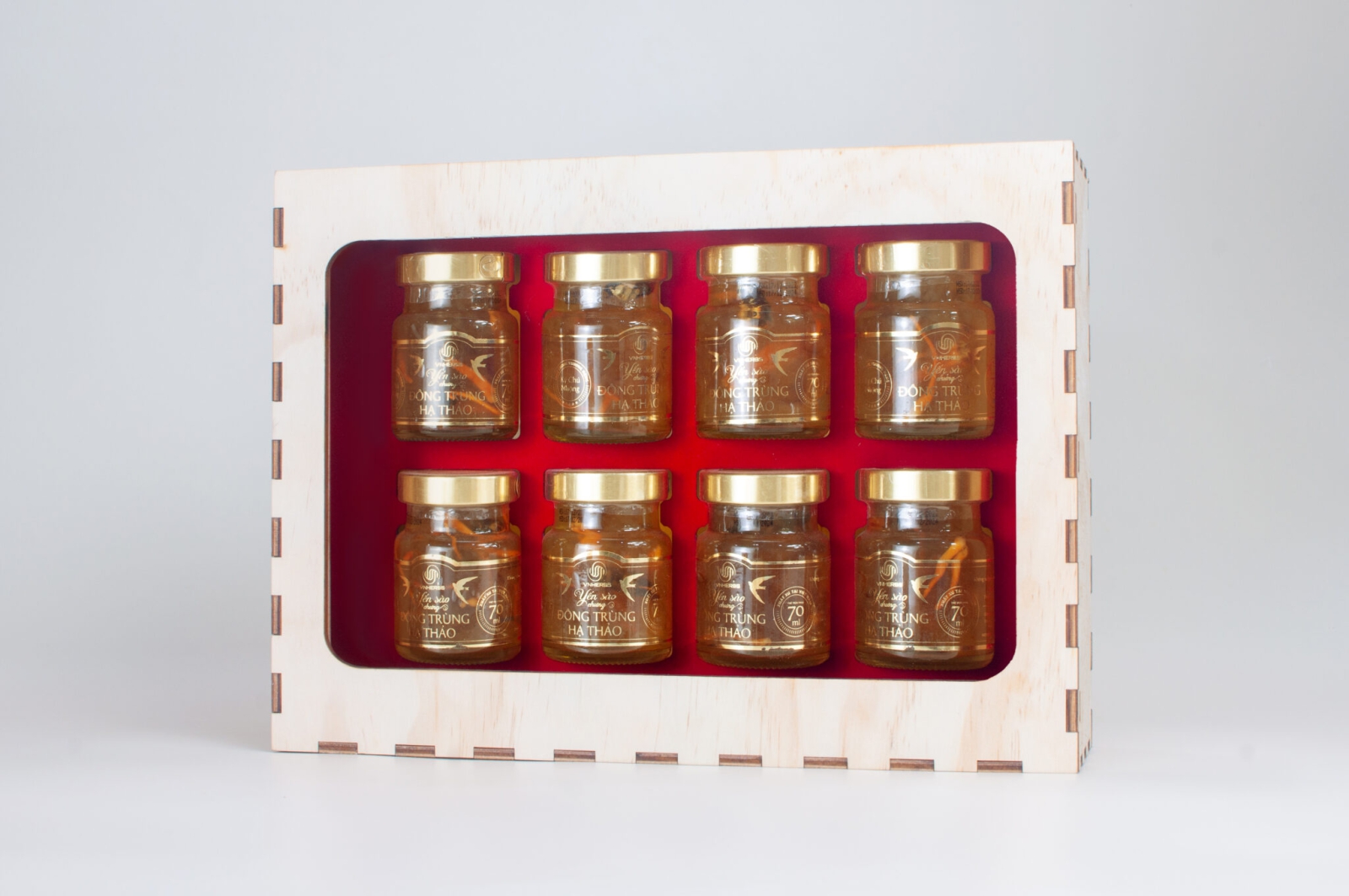 Yến sào chưng Đông Trùng Hạ Thảo hộp gỗ 8 lọ – Tinh hoa bổ dưỡng, quà tặng đẳng cấp