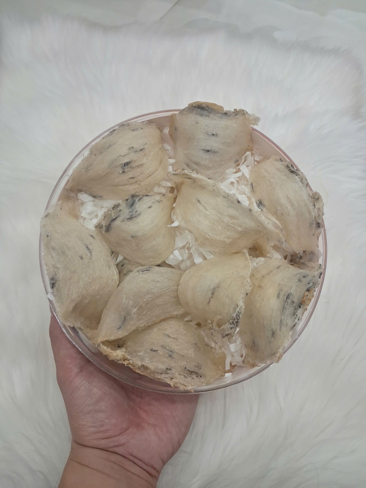 Nguyên chất 100%: Chưa qua tinh chế, giữ nguyên hình dáng tổ yến.